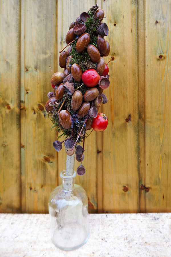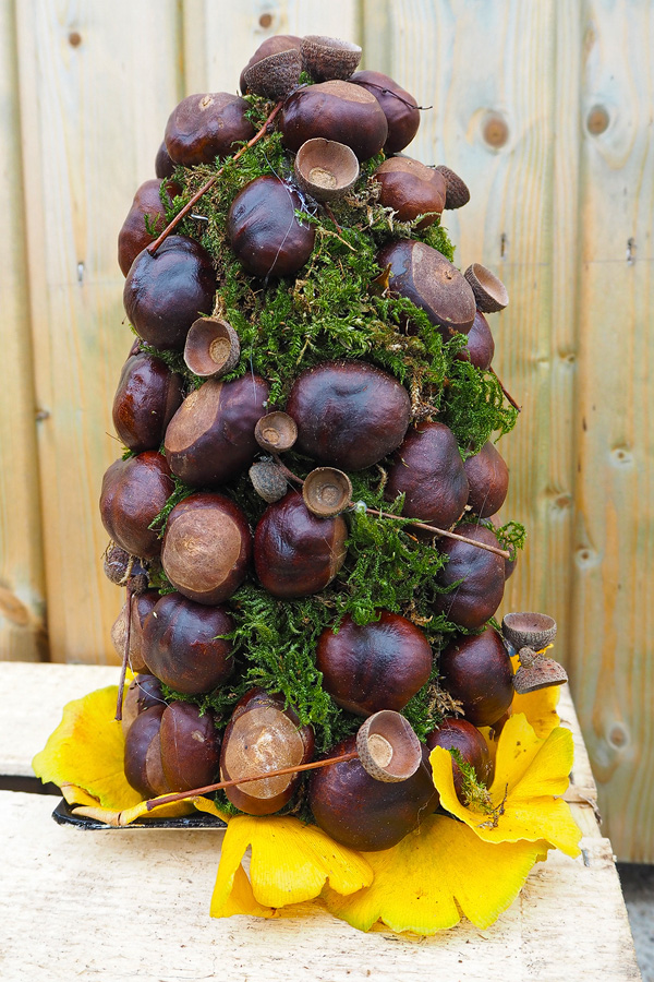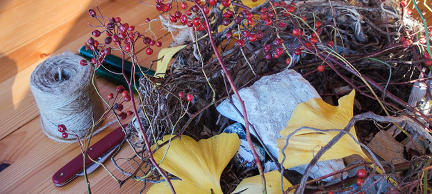 Kastanienkegel oder kleine Eichenbäumchen fertigen, Blattkränze binden, Schönes aus Hagebuttenfrüchten gestalten